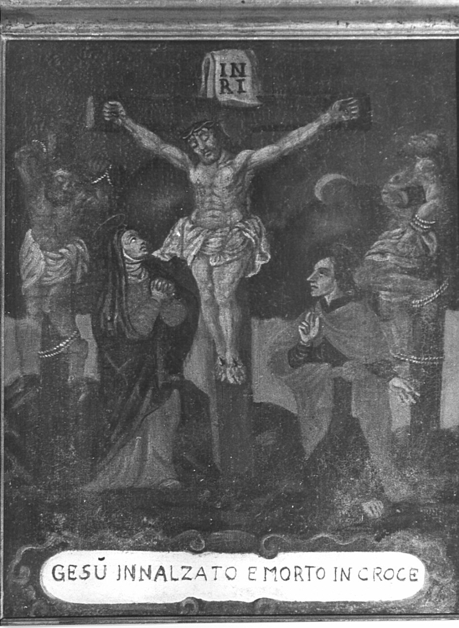 - ISCRIZIONI In basso - GESU' INNALZATO E MORTO IN CROCE - lettere capitali - a pennello - latino