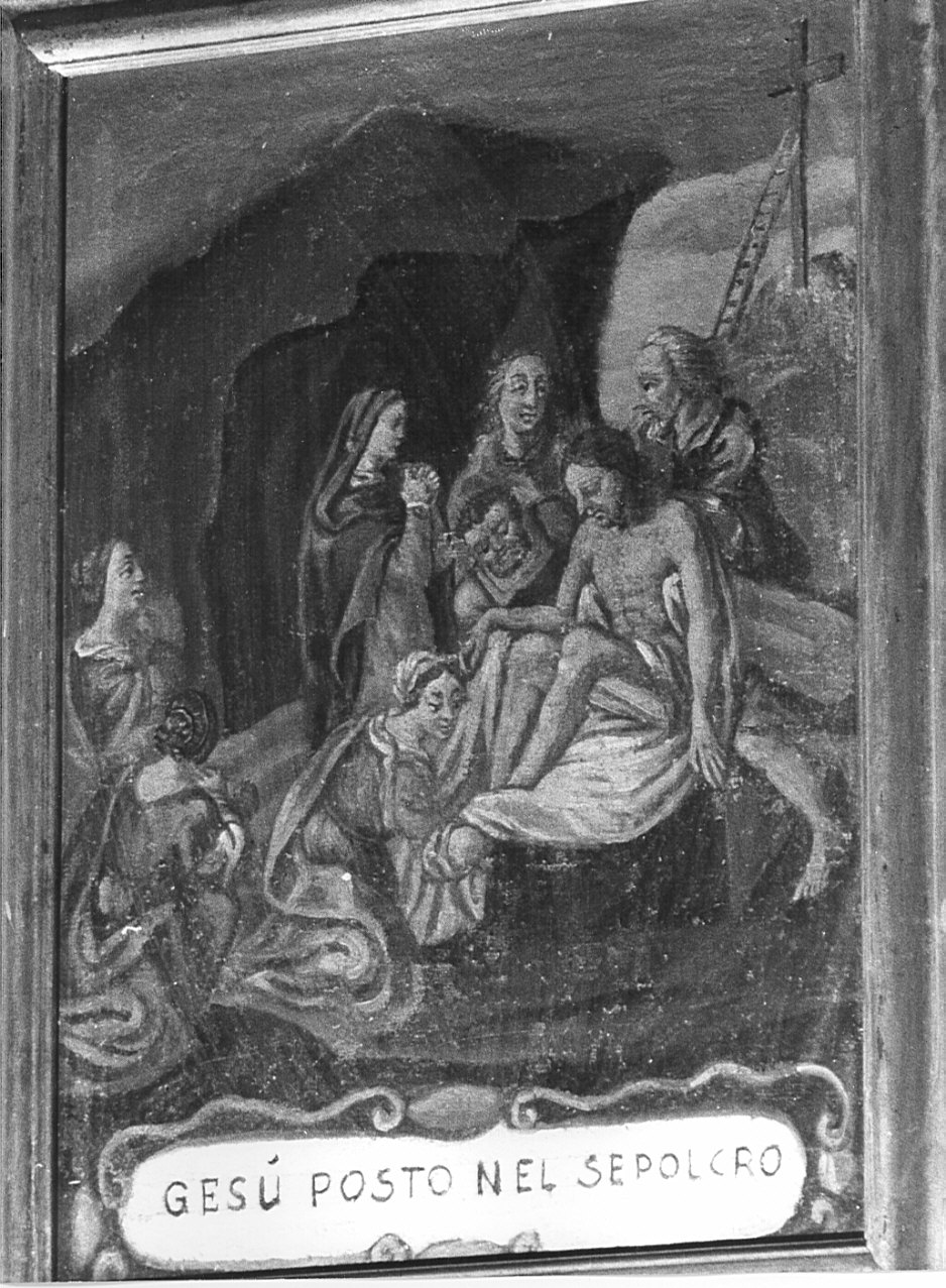 - ISCRIZIONI In basso - GESU' POSTO NEL SEPOLCRO - lettere capitali - a pennello -