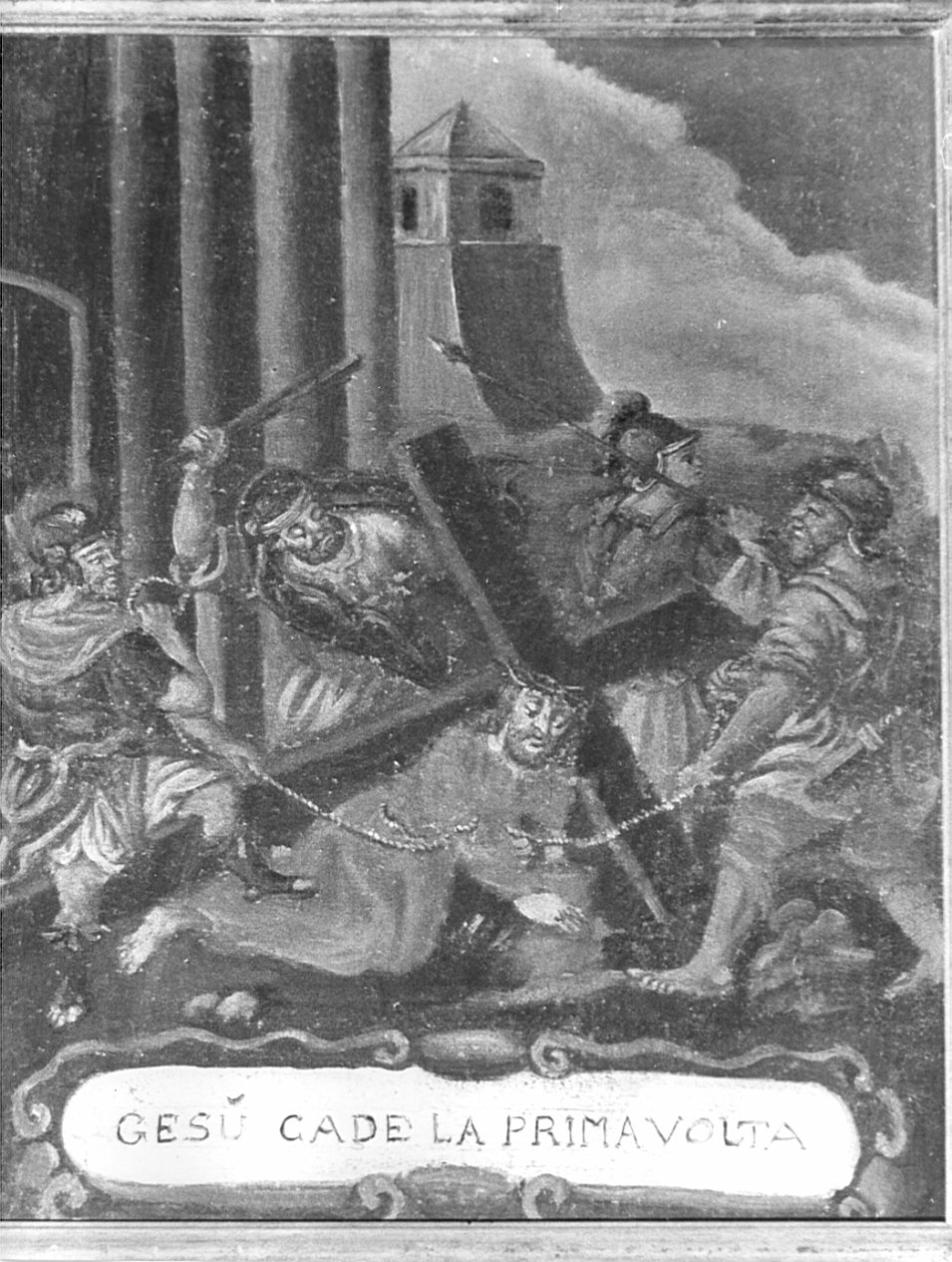 - ISCRIZIONI In basso - GESU' CADE LA PRIMA VOLTA - lettere capitali - a pennello -
