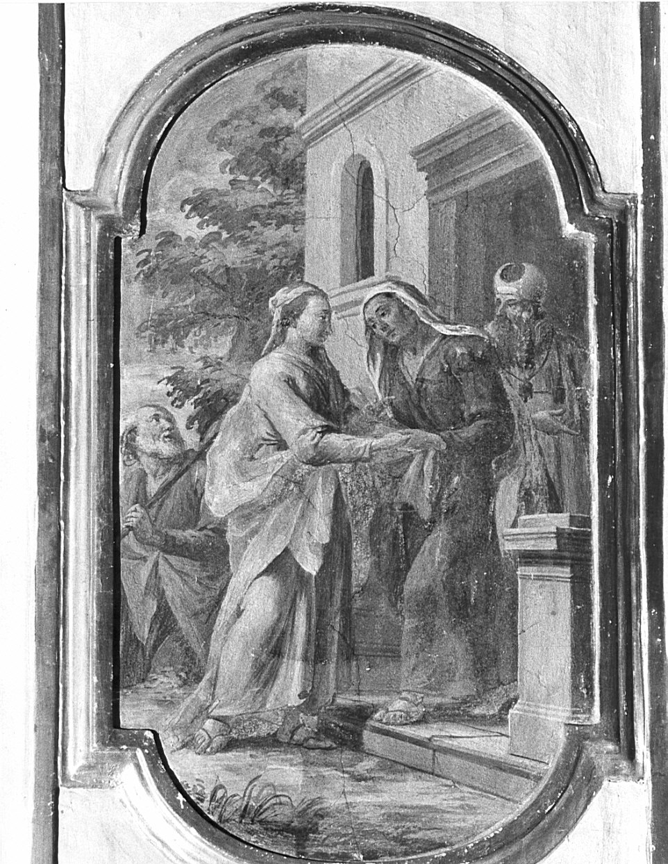 Personaggi: Madonna; San Giuseppe; Sant'Elisabetta; San Zaccaria. Elementi architettonici: uscio. Piante: albero