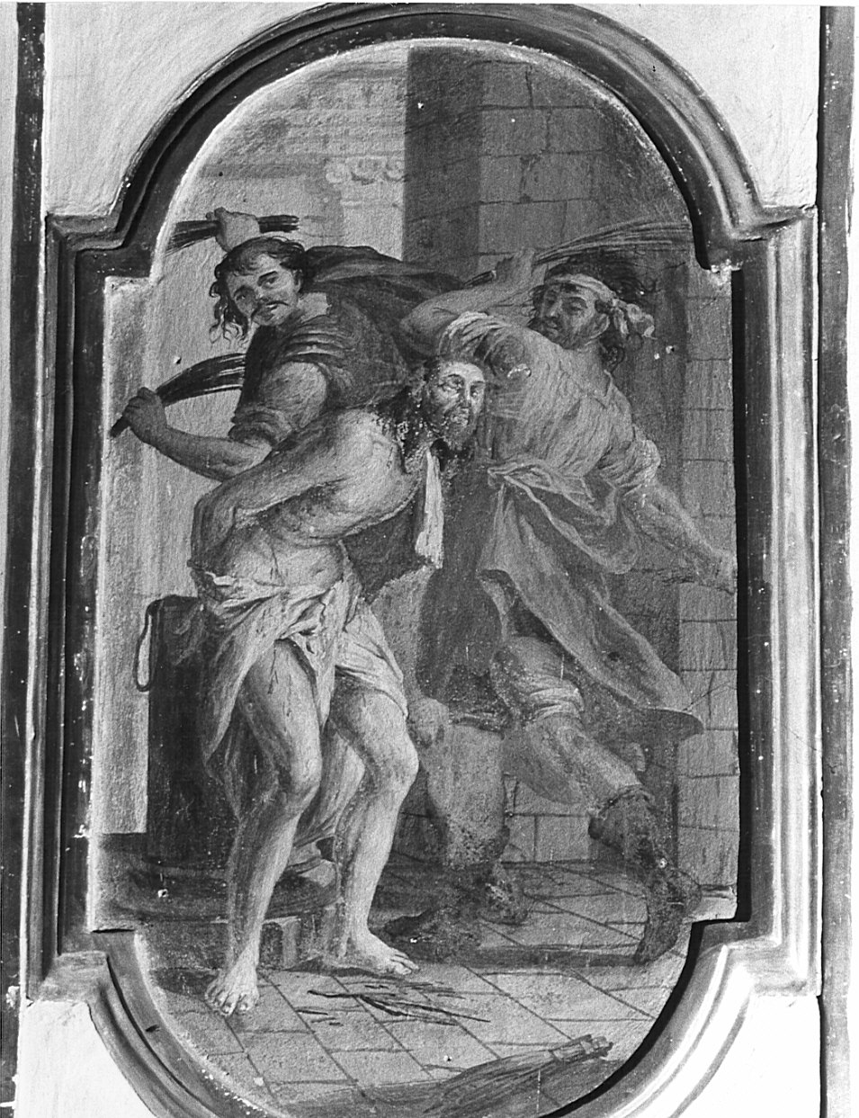 Personaggi: Cristo. Figure maschili: sgherri. Oggetti: flagelli