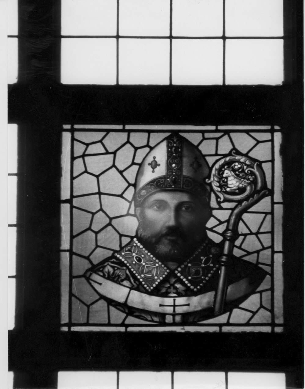 Personaggi: San Magno. Abbigliamento: (San Magno) mitria. Suppellettili ecclesiastiche: pastorale