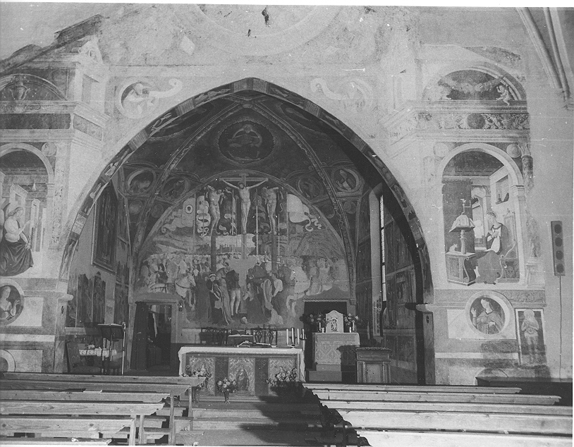 A destra e a sinistra dell'arco d'accesso al presbiterio il pittore ha dipinto, separatamente, l'Angelo e la Vergine completando sotto di essi la serie delle Sibille, entro ambiente di architettura quattrocentesca