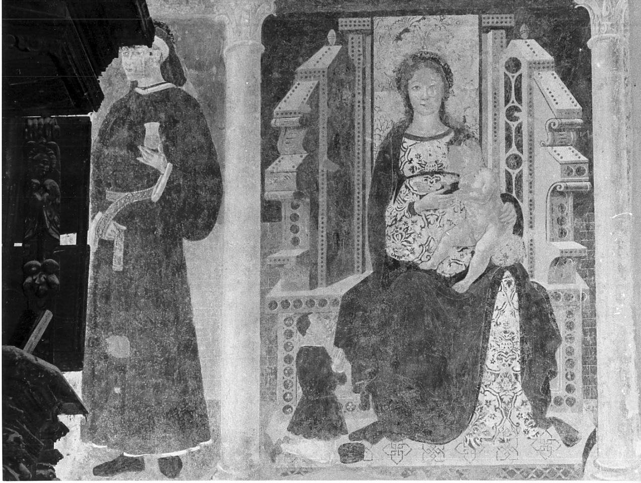 Il dipinto, situato sulla parete della terza campata fa parte, similmente ai precedenti, del medesimo criterio distributivo. Più sotto di quest'ultimo rimangono pochi lacerti d'affresco in uno dei quali è raffigurato un angioletto. Sotto il San Damiano v'è un avanzo di pittura con parte di viso di Madonna e di trono visto di scorcio