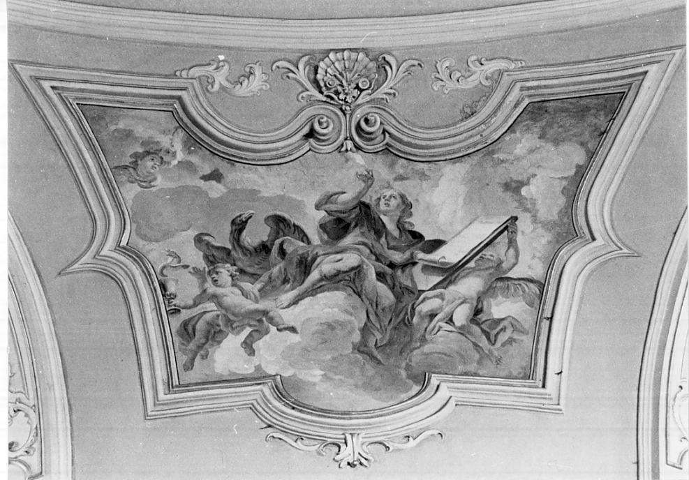 In uno dei quattro pennacchi della volta affresco rappresentante San Giovanni Evangelista nell'atto di scrivere il Vangelo assiso sopra una nuvola