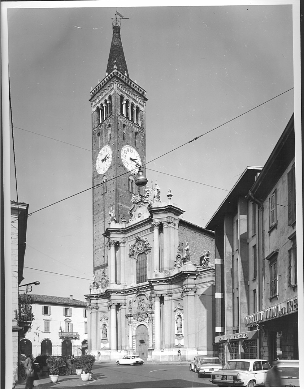 - NOTIZIE STORICO CRITICHE Il Camerone annota che intorno all'anno 1732 la fabbrica di San Martino iniziava la trasformazione della facciata gotica del tempio, dandone l'incarico all'architetto Ruggeri. Dell'antica chiesa rimaneva solo il portale di epoca cinquecentesca. La nuova facciata però apparve contrastare con l'interno in cui era conservata la decorazione tardo cinquecentesca dei Cavagna; fu dato quindi l'incarico del rimodernamento ai fratelli Galliari che vi avrebbero lavorato dal 1740/3 al 1775 circa, procedendo ad una ristrutturazione della Chiesa. Gli affreschi e gli stucchi nell'interno riprendono gli elementi della facciata. Durante i lavori vennero rimossi l'organo e la cantoria che furono trasportati all'ingresso della chiesa e tale sistemazione rese opportuna la chiusura dell'antica cappella, in cui ora è il Battistero, per allogarvi la scala d'accesso all'organo e ai mantici. Nel Settecento si ultimarono anche gli altari delle cappelle e la decorazione della cappella di S. Antonio.Facciata a due ordini architettonici sovrapposti con un timpano curvilineo. Chiari riferimenti alla tradizione barocca romana che richiama Carlo Fontana, maestro del Ruggeri