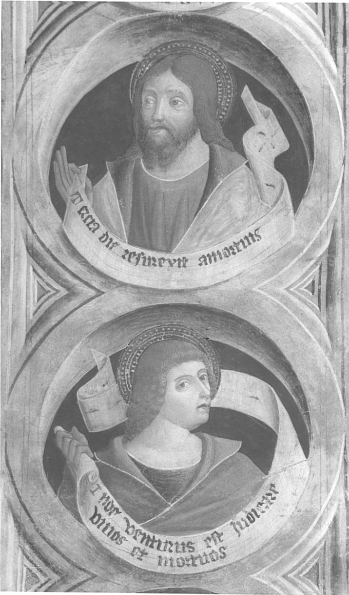 - ISCRIZIONI nei cartigli - Tertia die resurevit a mortuis/ ...venturus est iudicare vivos et mortuos - caratteri gotici - a pennello - latino
