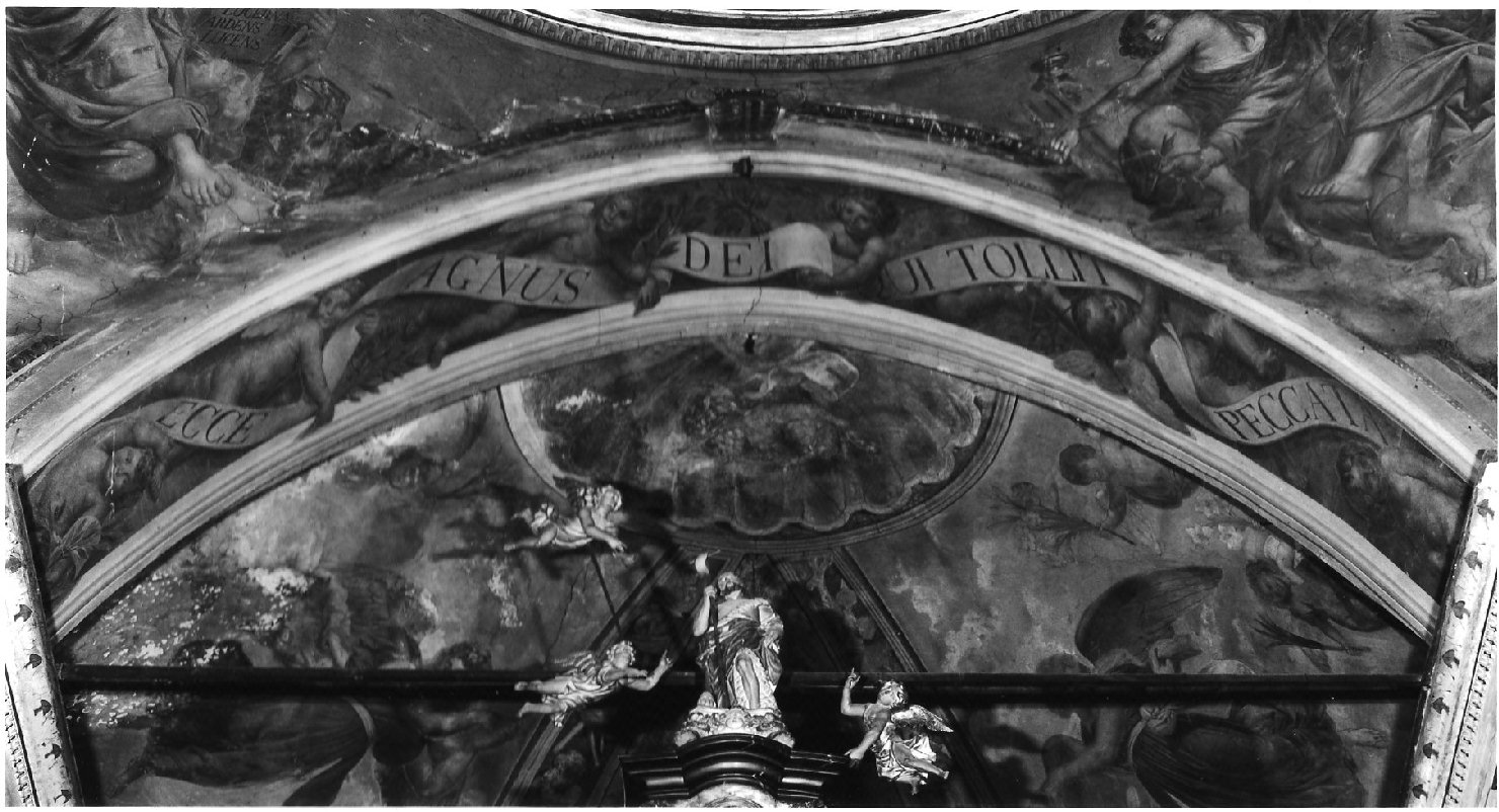 sott'arco del catino absidale con putti alati spieganti un cartiglio