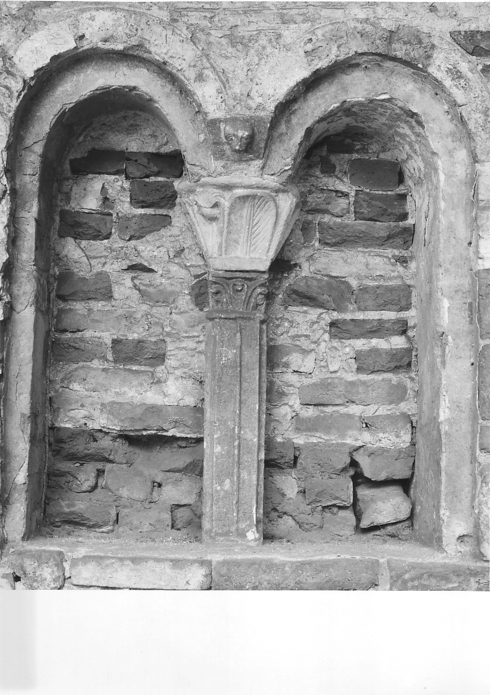 Pilastrino con capitello presente nella bifora del chiostro romanico, nell'ala orientale