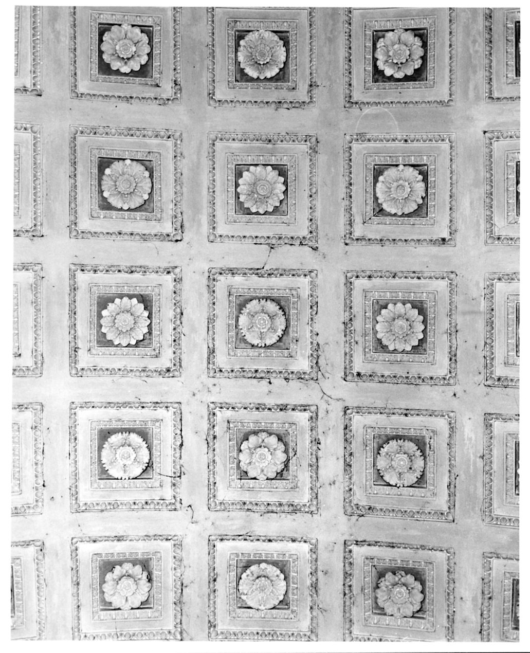 Decorazione in stucco posta a ornare la volta a botte dello scalone