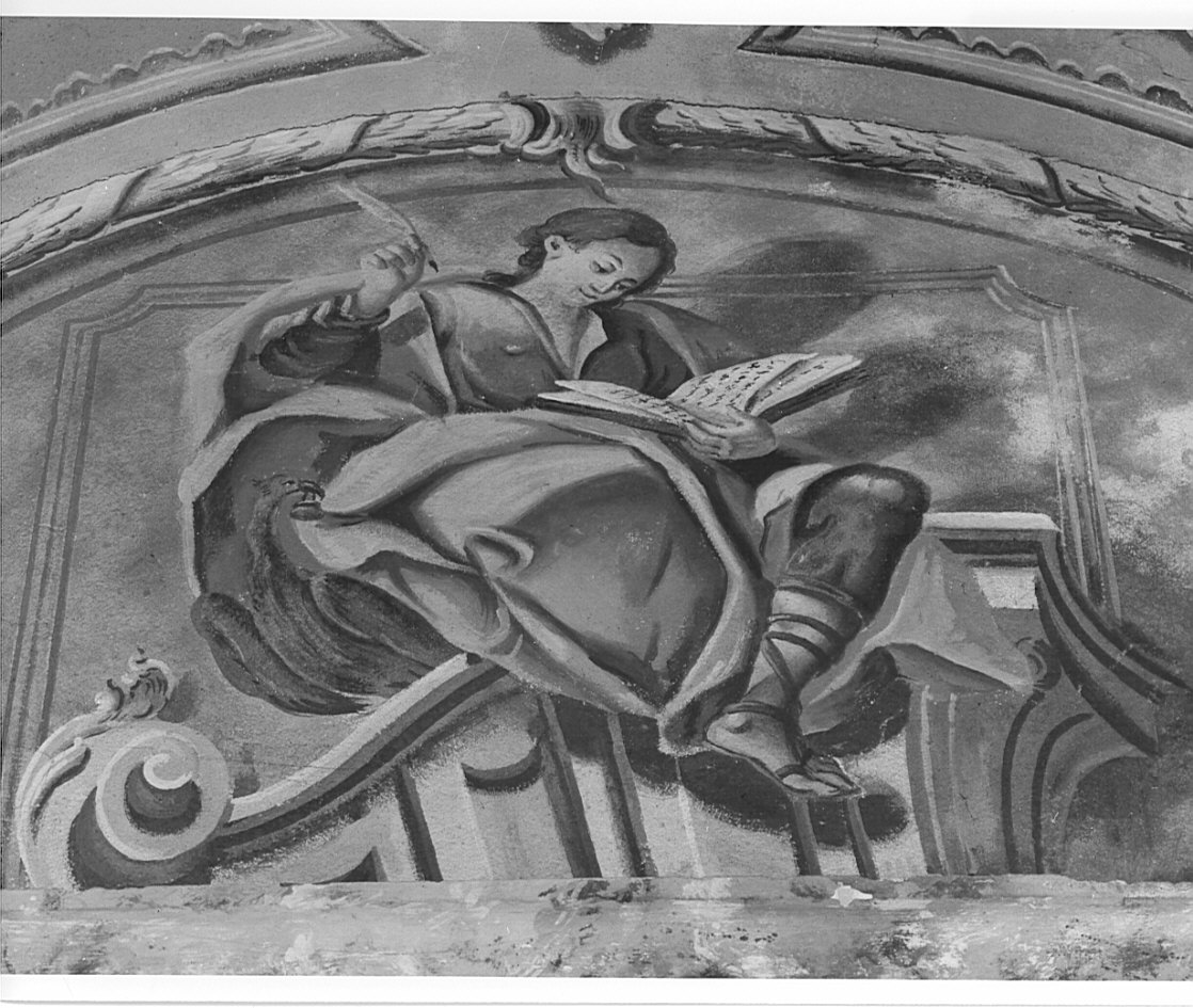 - NOTIZIE STORICO CRITICHE Gli affreschi sono collocati sopra il cornicione, nelle lunette sotto le quattro vele che interrompono la volta a botte nella prima e nella terza campata.In particolar modo per la diversa tonalità di colori sembrerebbero di mano diversa da quella che ha eseguito i dipinti sopra il portale d'ingresso e da quella che ha eseguito gli affreschi del 1768 nel presbiterio