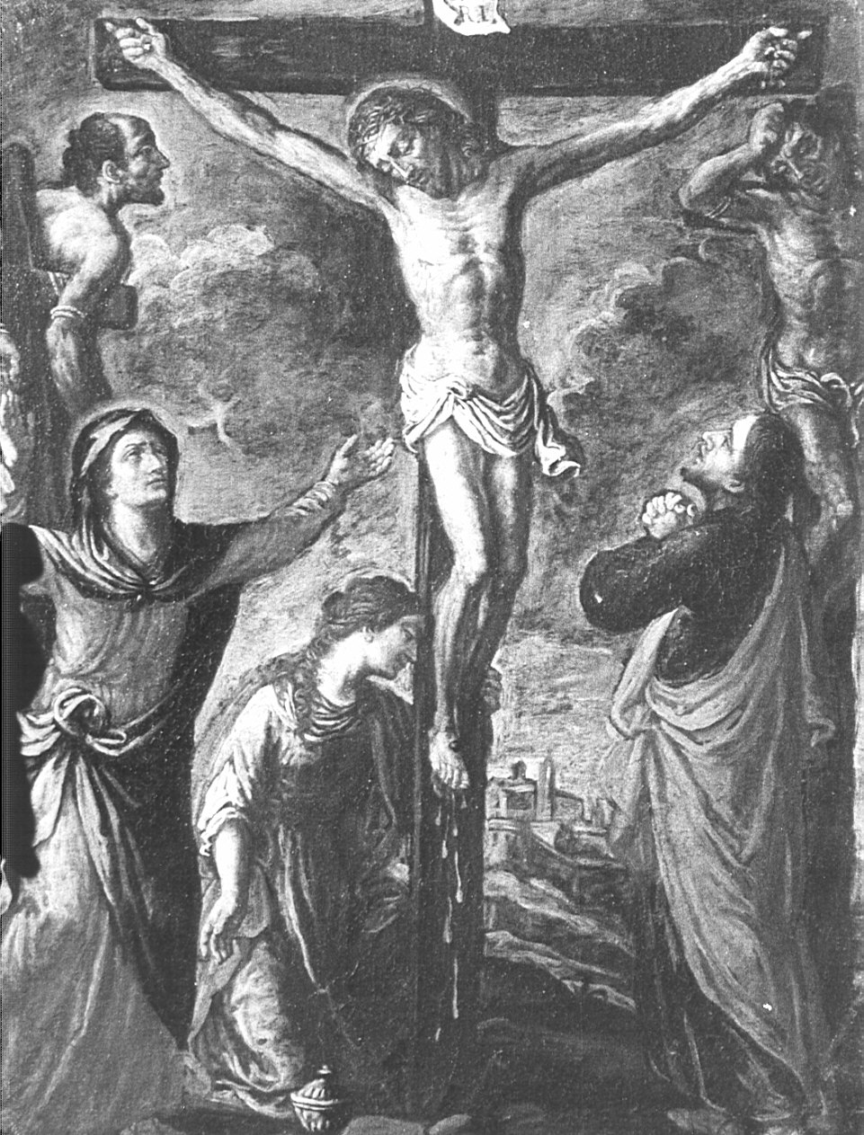 - NOTIZIE STORICO CRITICHE Tutti i dipinti della Via Crucius sono dovuti a Gaetano Peverada. A lui li attribuiscono in forma dubitativa o certa (Pagnoni) tutti gli studiosi. Il pittore eseguì parecchie opere nella bergamasca con cui is riscontrano parecchie affinità. Figure trattate in modo assai realistico, a volte un po' caricaturale e le raffigurazioni hanno un tono paesano e ingenuo. Le cornici sono in stile tardo settecentesco con andamento rococò