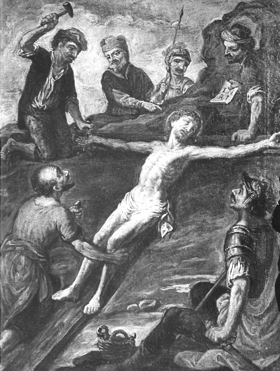 - NOTIZIE STORICO CRITICHE Tutti i dipinti della Via Crucius sono dovuti a Gaetano Peverada. A lui li attribuiscono in forma dubitativa o certa (Pagnoni) tutti gli studiosi. Il pittore eseguì parecchie opere nella bergamasca con cui is riscontrano parecchie affinità. Figure trattate in modo assai realistico, a volte un po' caricaturale e le raffigurazioni hanno un tono paesano e ingenuo. Le cornici sono in stile tardo settecentesco con andamento rococò
