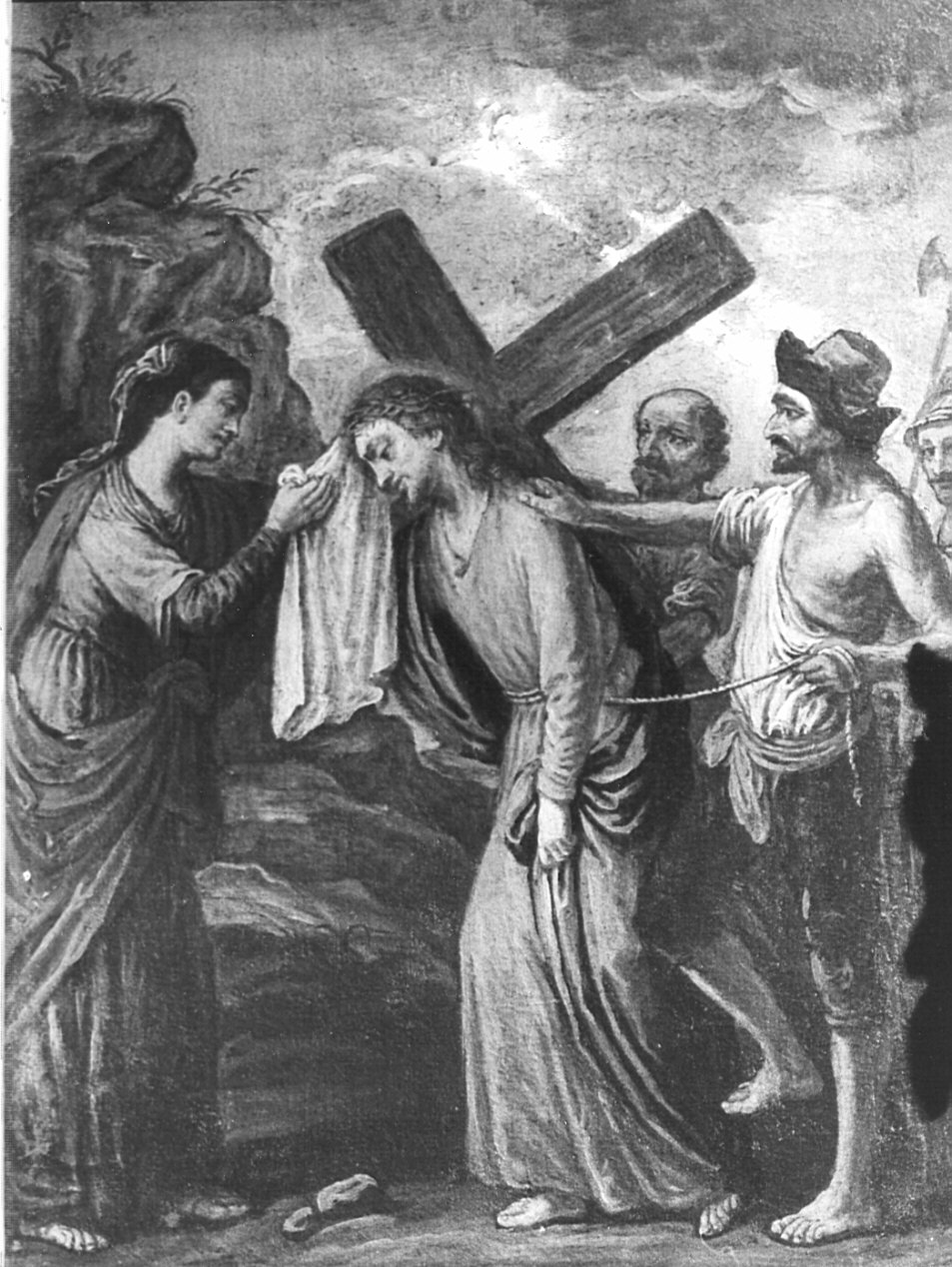 - NOTIZIE STORICO CRITICHE Tutti i dipinti della Via Crucius sono dovuti a Gaetano Peverada. A lui li attribuiscono in forma dubitativa o certa (Pagnoni) tutti gli studiosi. Il pittore eseguì parecchie opere nella bergamasca con cui is riscontrano parecchie affinità. Figure trattate in modo assai realistico, a volte un po' caricaturale e le raffigurazioni hanno un tono paesano e ingenuo. Le cornici sono in stile tardo settecentesco con andamento rococò