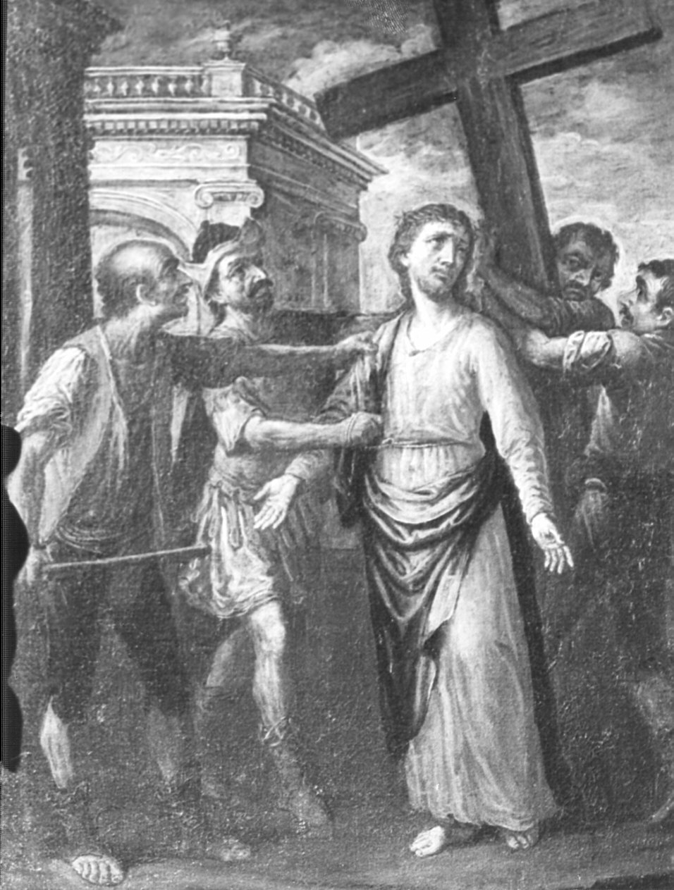 - NOTIZIE STORICO CRITICHE Tutti i dipinti della Via Crucius sono dovuti a Gaetano Peverada. A lui li attribuiscono in forma dubitativa o certa (Pagnoni) tutti gli studiosi. Il pittore eseguì parecchie opere nella bergamasca con cui is riscontrano parecchie affinità. Figure trattate in modo assai realistico, a volte un po' caricaturale e le raffigurazioni hanno un tono paesano e ingenuo. Le cornici sono in stile tardo settecentesco con andamento rococò