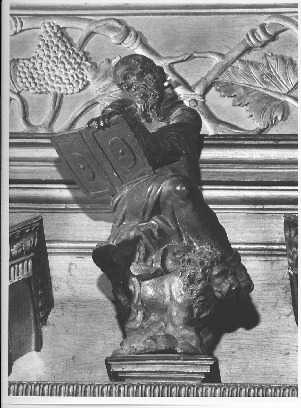 - ISCRIZIONI sul cornicione su cui poggiano i piedistalli degli evangelisti - HIC EST PANIS/ QUI DE COE/ LO DESCEN/ DIT QUI MA/ NDUCAT HV/ NC PANEM V/ IVET IN AET/ ERNUM -