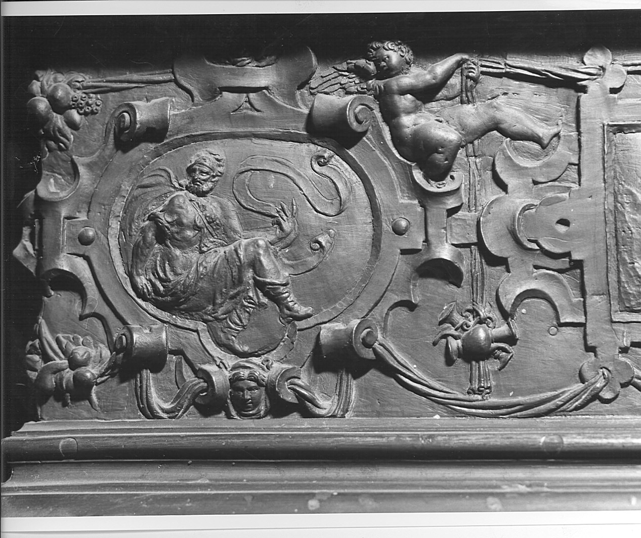 - NOTIZIE STORICO CRITICHE Fino al 1902 si ritenne prevalentemente che i fratelli Guicciardi fossero i committenti dell'opera, ma per primo il Monti, che nel 1892 aveva ripreso la stessa affermazione, assegnò ai fratelli di Ponte la paternità dell'opera. Il dubbio era sorto per il fatto che dei fratelli Guicciardi, no ci sono altre opere note. Ma probabilmente essi riservarono un'opera al loro paese natio. Nella scritta è detto che si tratta di un'opera dei "magistri" Guicciardi, realizzata a spese della comunità di Ponte e per interessamento del curato Giovan Maria Bruni Quadrio. Nell'Inventario del 1785 è citato un atto di Girolamo Guicciardi di Ponte del 14-10- 1580, foglio 102, dal quale risulta che le due scuole o confraternite del Santissimo (minore e maggiore), insieme con la comunità di Ponte, pagarono l'opera "sexcentum nonaginta aureos auri".(Cfr. Monti S., Ninguarda. La Valtellina degli atti della visita pastorale diocesana di F. Feliciano Ninguarda, Como 1892, riedizione Sondrio 1963, p. 95; Reminiscenze ed esortazioni del Sac. Gusmeroli Carlo, Prevosto e V.F. di Ponte in Valtellina al suo diletto popolo, Sondrio 1914, p. 59; Guicciardi L., In occasione che l'Ill.mo e Rev.mo Monsignor Giambattista Castelnuovo vescovo di Como, visitando la prima volta la prov. di Sondrio, amministrò la Cresima e consacrò il nuovo altare magg. nella Chiesa, Como 1824)