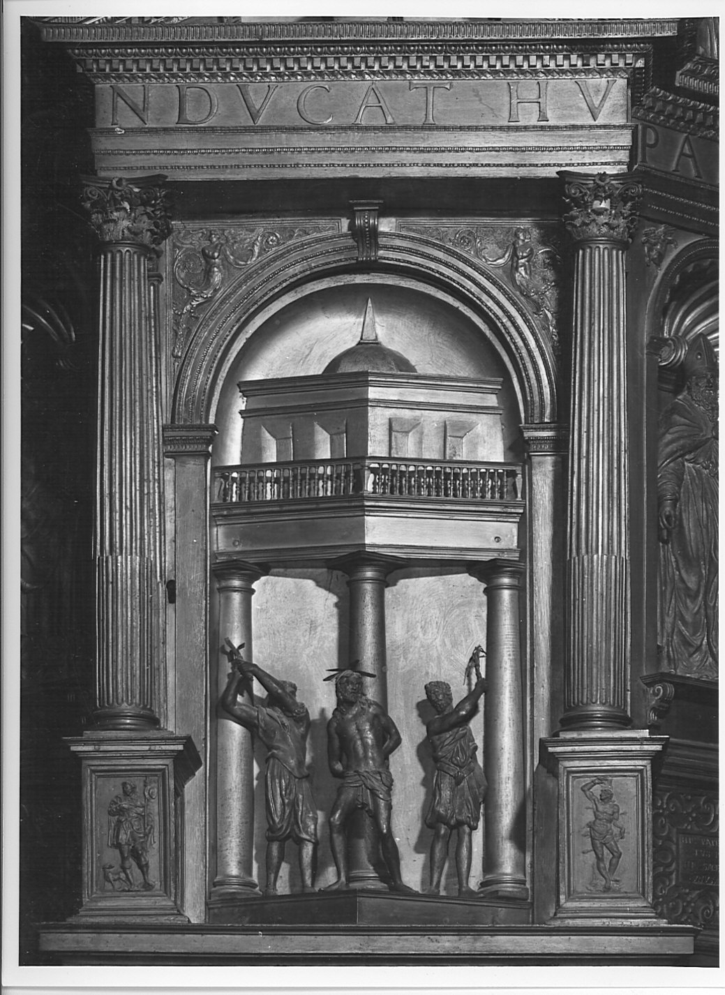- NOTIZIE STORICO CRITICHE Fino al 1902 si ritenne prevalentemente che i fratelli Guicciardi fossero i committenti dell'opera, ma per primo il Monti, che nel 1892 aveva ripreso la stessa affermazione, assegnò ai fratelli di Ponte la paternità dell'opera. Il dubbio era sorto per il fatto che dei fratelli Guicciardi, no ci sono altre opere note. Ma probabilmente essi riservarono un'opera al loro paese natio. Nella scritta è detto che si tratta di un'opera dei "magistri" Guicciardi, realizzata a spese della comunità di Ponte e per interessamento del curato Giovan Maria Bruni Quadrio. Nell'Inventario del 1785 è citato un atto di Girolamo Guicciardi di Ponte del 14-10- 1580, foglio 102, dal quale risulta che le due scuole o confraternite del Santissimo (minore e maggiore), insieme con la comunità di Ponte, pagarono l'opera "sexcentum nonaginta aureos auri".(Cfr. Monti S., Ninguarda. La Valtellina degli atti della visita pastorale diocesana di F. Feliciano Ninguarda, Como 1892, riedizione Sondrio 1963, p. 95; Reminiscenze ed esortazioni del Sac. Gusmeroli Carlo, Prevosto e V.F. di Ponte in Valtellina al suo diletto popolo, Sondrio 1914, p. 59; Guicciardi L., In occasione che l'Ill.mo e Rev.mo Monsignor Giambattista Castelnuovo vescovo di Como, visitando la prima volta la prov. di Sondrio, amministrò la Cresima e consacrò il nuovo altare magg. nella Chiesa, Como 1824)