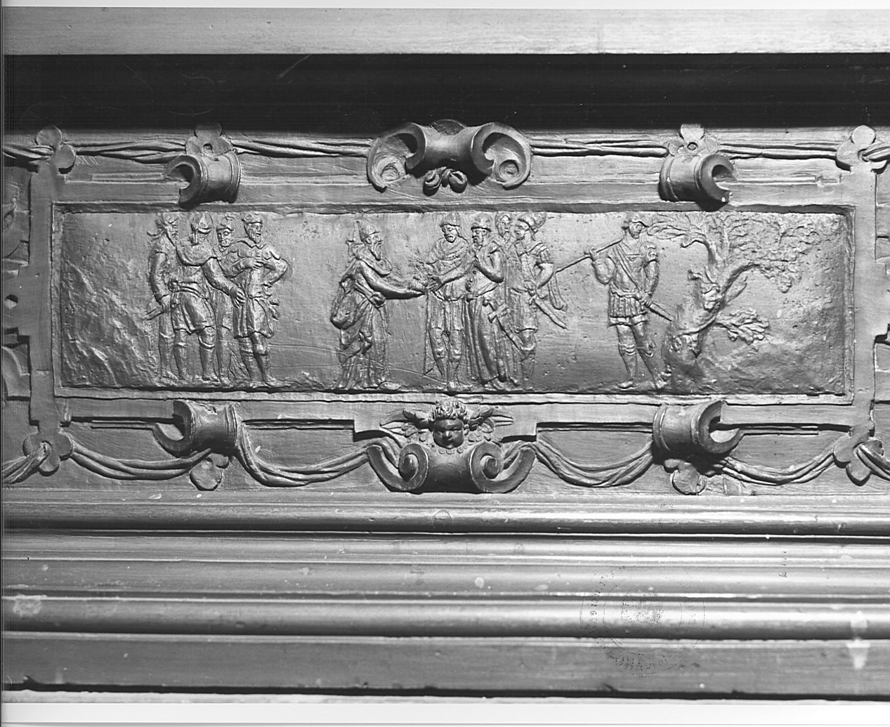- NOTIZIE STORICO CRITICHE Fino al 1902 si ritenne prevalentemente che i fratelli Guicciardi fossero i committenti dell'opera, ma per primo il Monti, che nel 1892 aveva ripreso la stessa affermazione, assegnò ai fratelli di Ponte la paternità dell'opera. Il dubbio era sorto per il fatto che dei fratelli Guicciardi, no ci sono altre opere note. Ma probabilmente essi riservarono un'opera al loro paese natio. Nella scritta è detto che si tratta di un'opera dei "magistri" Guicciardi, realizzata a spese della comunità di Ponte e per interessamento del curato Giovan Maria Bruni Quadrio. Nell'Inventario del 1785 è citato un atto di Girolamo Guicciardi di Ponte del 14-10- 1580, foglio 102, dal quale risulta che le due scuole o confraternite del Santissimo (minore e maggiore), insieme con la comunità di Ponte, pagarono l'opera "sexcentum nonaginta aureos auri".(Cfr. Monti S., Ninguarda. La Valtellina degli atti della visita pastorale diocesana di F. Feliciano Ninguarda, Como 1892, riedizione Sondrio 1963, p. 95; Reminiscenze ed esortazioni del Sac. Gusmeroli Carlo, Prevosto e V.F. di Ponte in Valtellina al suo diletto popolo, Sondrio 1914, p. 59; Guicciardi L., In occasione che l'Ill.mo e Rev.mo Monsignor Giambattista Castelnuovo vescovo di Como, visitando la prima volta la prov. di Sondrio, amministrò la Cresima e consacrò il nuovo altare magg. nella Chiesa, Como 1824)