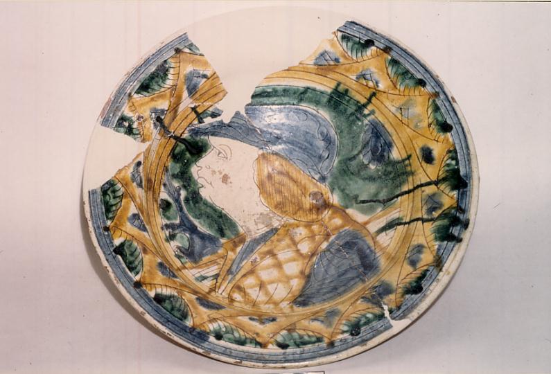 - NOTIZIE STORICO CRITICHE Per evidenti affinità con altri pezzi simili raffiguranti profili d'uomo con sfondo d'alberi e graticcio graffito, l'esemplare va accostato alla produzione veneta (Padova o Venezia) della fine del sec. XV come già rilevato dal Mangili (cfr. bibl.) che nota influenze e confronti che possono aver esercitato effetti anche sulla produzione cremonese
