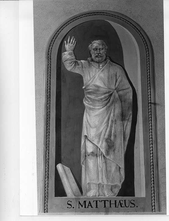 L'apostolo è raffigurato stante entro finta nicchia. Il volto è incorniciato dalla barba e dai lunghi capelli. Il braccio destro è alzato nell'atto di chi vuole attirare l'attenzione, mentre il braccio destro è nascosto dal mantello. Un libro è posto vicino alla gamba destra