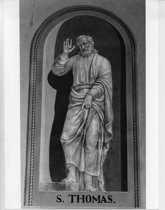 L'apostolo è raffigurato stante entro finta nicchia. Il volto è barbuto ed incorniciato da lunghi capelli. Lo sguardo è rivolto verso terra, mentre la mano destra è alzata nell'atto di richiamare l'attenzione. La mano sinistra trattiene il mantello che copre la lunga tunica