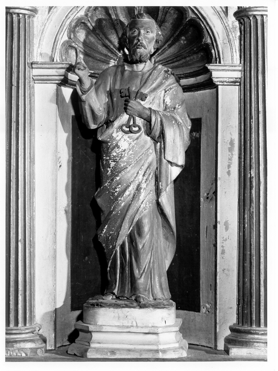 - NOTIZIE STORICO CRITICHE Secondo G. Antonioli, che raccoglie una tradizione locale, "intorno al 1930 il tabernacolo di marmo era stato traslato dall'altar maggiore a quello di S. Caterina e per completare il vuoto lasciato (nell'ancona) fu commissionata dall'intagliatore locale Maffi Antonio detto Mugheta la statuetta di S. Pietro, che venne affiancata alle altre raffiguranti i compatroni" (Coppa 1985, p. 155)