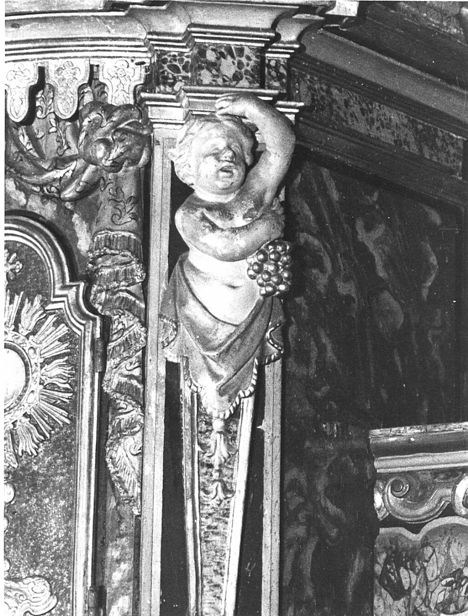 Putto in età infantile. Ha capelli corti ondulati, apre la bocca come per urlare; tiene il braccio sinistro sollevato sopra il capo, con la destra tiene un grappolo d'uva. Funge da erma sulla destra del tabernacolo. Il raccordo con la parte architettonica è costituito da un panno avvolto ai fianchi. Il putto è dipinto di bianco, l'uva e il panno sono dorati