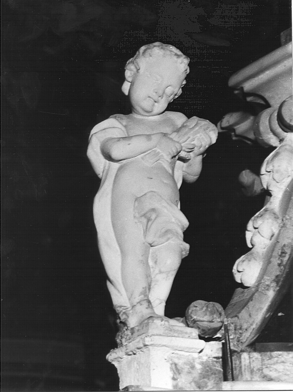 La statua presenta un angioletto nudo, avvolto da una stola, con in mano una fiaccola (?)