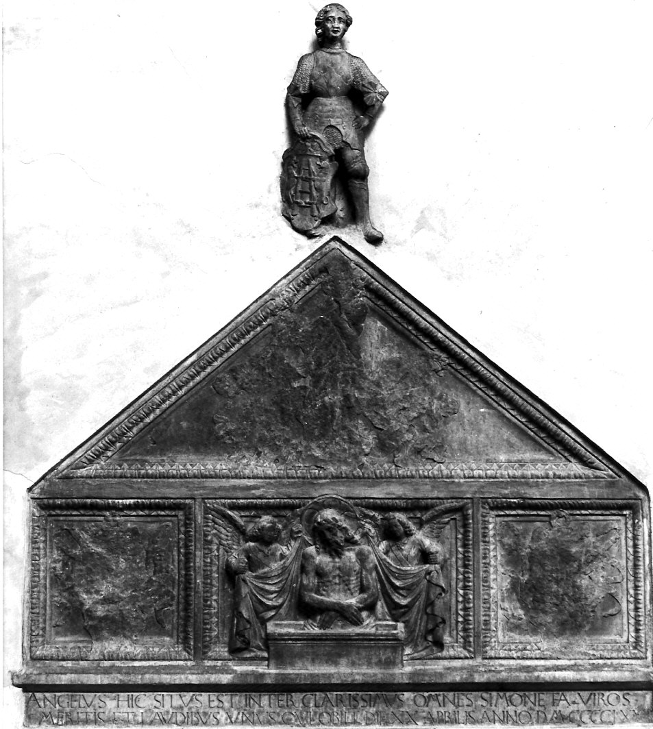 - ISCRIZIONI alla base - ANGELUS HIC SITUS EST INTER CLARISSIMUS OMNES SIMONETA VIROS/ MERITIS ET LAUDIBUS UNUS QUI OBIIT DIE XX APRILIS ANNO DMCCCCLXX(II) - caratteri gotici -