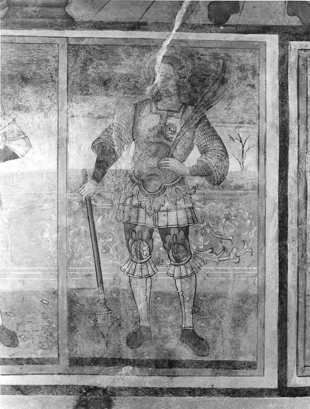 Personaggi: San Defendente. Attributi: (San Defendente) mazza; palma del martirio. Abbigliamento: armatura