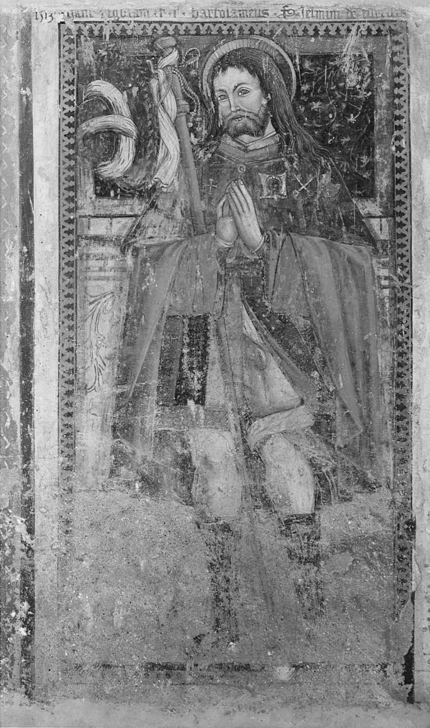 - ISCRIZIONI in alto - 1513 HANC FIGURAM F.F. BARTOLOMEUS IELMINI DE TURELLIS - caratteri gotici - a pennello - latino