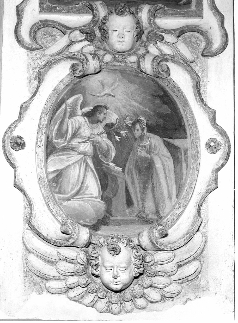 Riquadro entro cornice in stucco a cartiglio con cherubini apicali