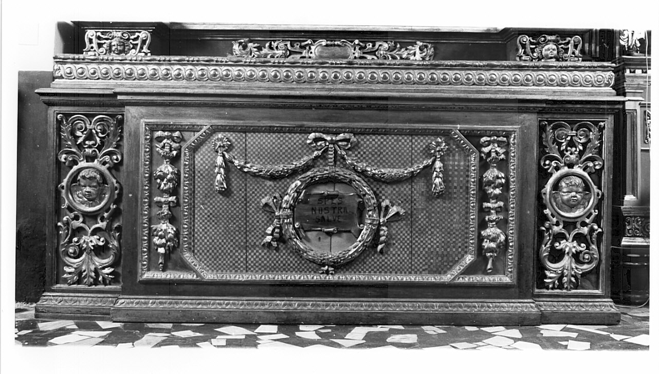 Figure: cherubini. Decorazioni: motivi decorativi vegetali; volute; festoni