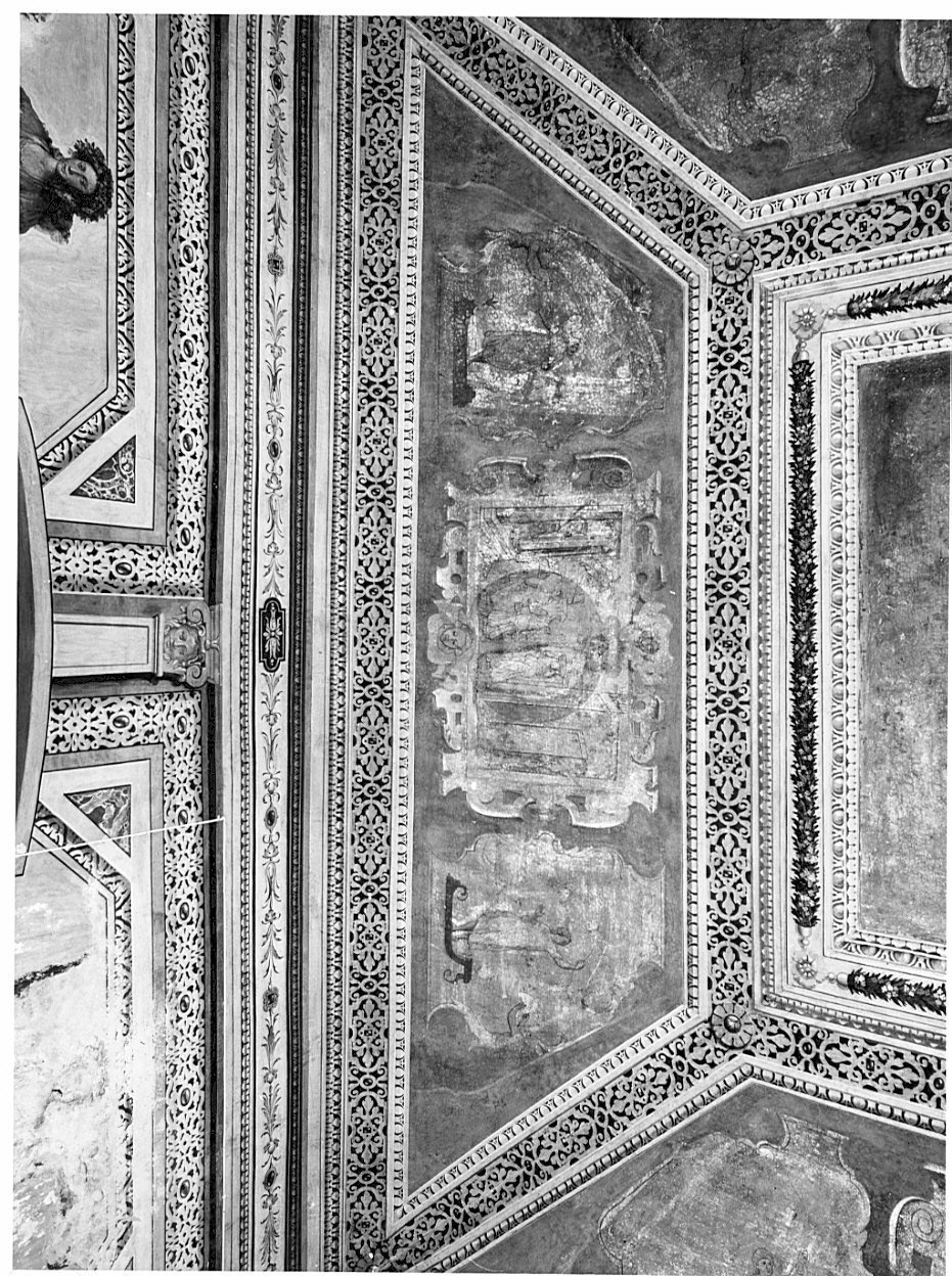 Figure: figura allegorica femminile (?). Decorazioni: cornici a festoni; a ovoli; a motivi vegetali stilizzati