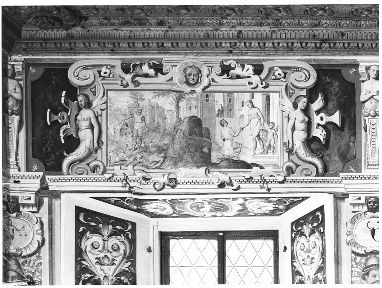 - NOTIZIE STORICO CRITICHE I nomi dei proprietari del palazzo nonchè committenti degli affreschi di tutto il complesso compaiono su una lapide in facciata, mentre la data 1577 è incisa nell'intradosso della porta lignea della sala di Giunone. Tutta la decorazione del palazzo risulta stilisticamente omogenea ed è databile fra poco prima del 1517, anno in cui viene completato il palazzo, il 1586, anno in cui muoiono i committenti. L'episodio dei dodici mesi rimane qualitativamente il piu' alto di tutta la decorazione del palazzo
