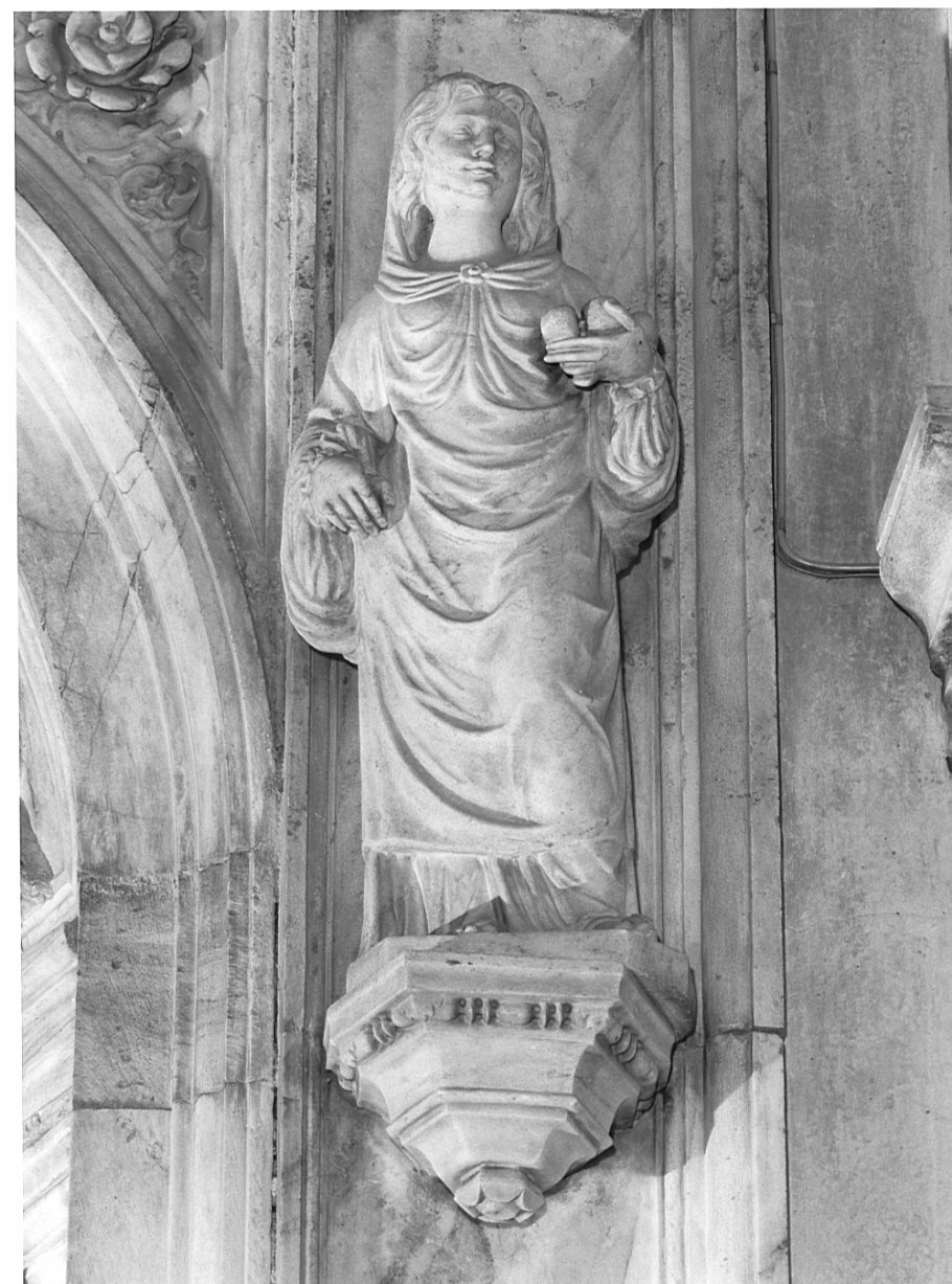 Statua sostenuta da mensola esagonale con rosetta apicale e modanatura a fusarola