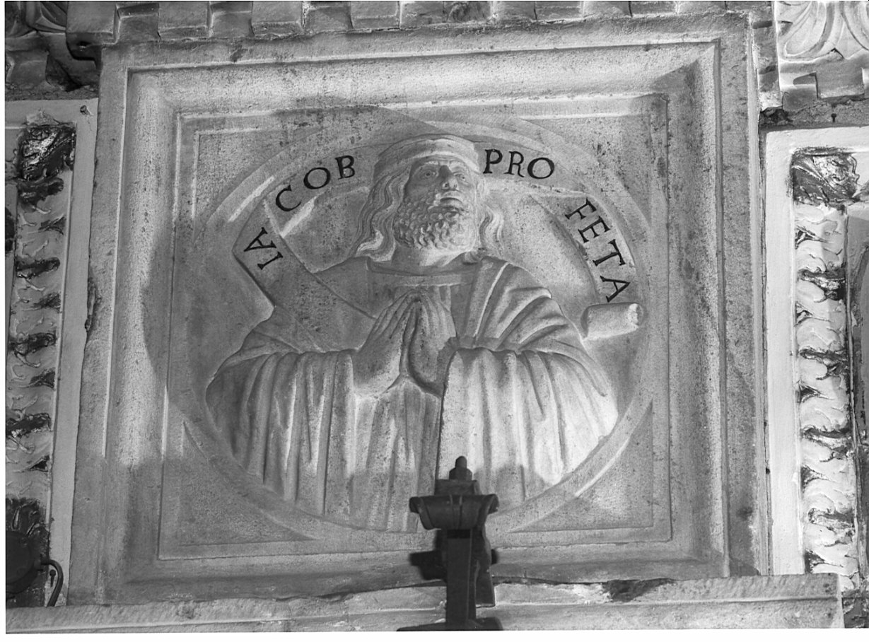 - ISCRIZIONI Entro il cartiglio sopra la figura - IACOB PROFETA - lettere capitali -