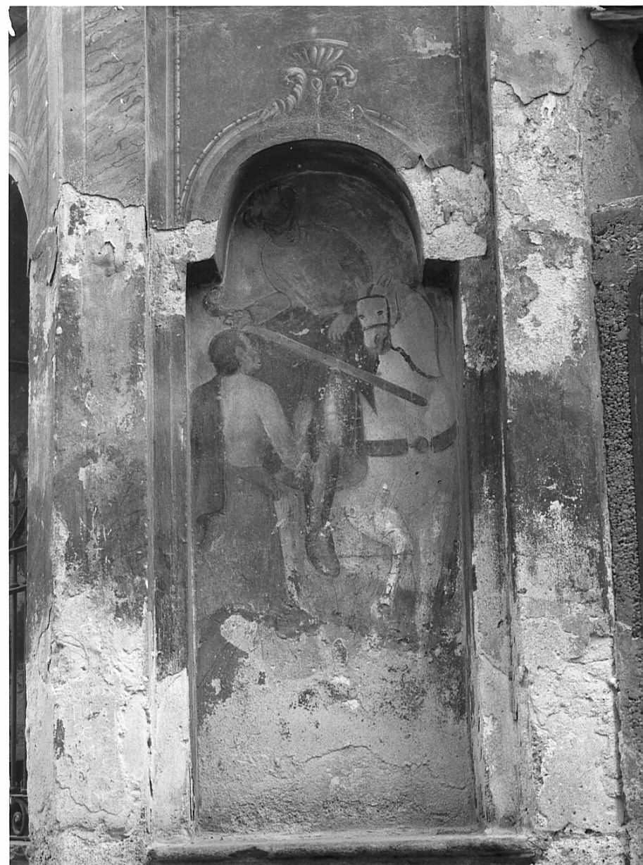 Personaggi: San Martino. Figure: povero. Oggetti: spada. Animali: cavallo