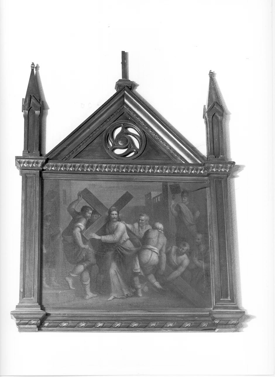 Personaggi: Cristo. Figure: carnefici; soldati. Oggetti: croce; vessilli