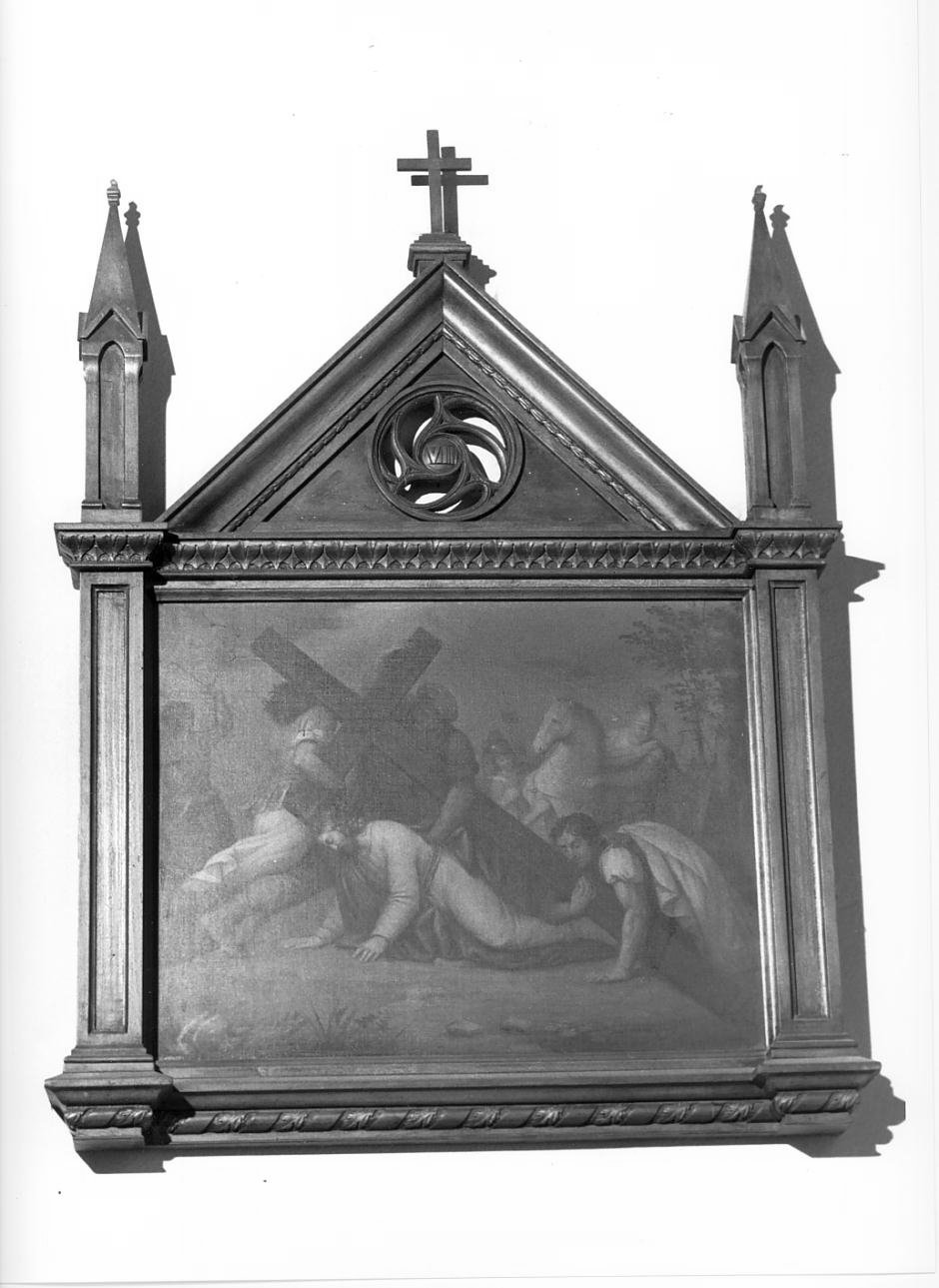Personaggi: Cristo. Figure: carnefici; soldati; cavaliere. Oggetti: croce