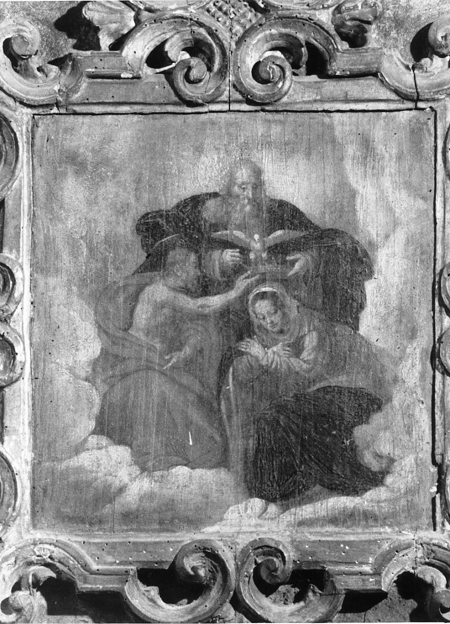 Personaggi: Madonna; Cristo; Dio. Simboli: (Spirito Santo) colomba. Oggetti: corona