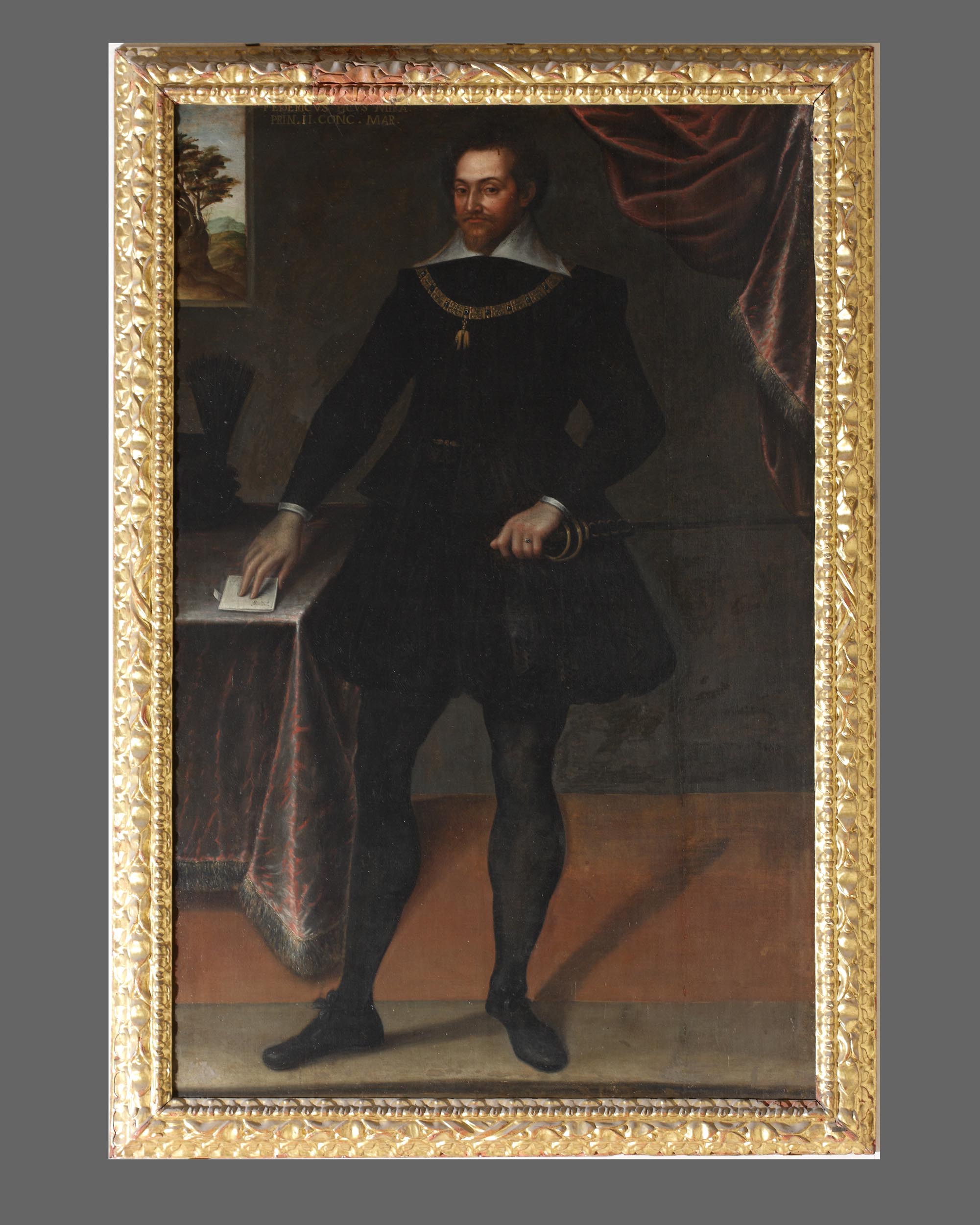 - NOTIZIE STORICO CRITICHE Il dipinto proviene dal palazzo dei Pico a Mirandola e da lì giunge a Mantova, assieme a tante altre opere qui tuttora conservate, nel 1716. Inventariata nel 1937 come opera del Peranda, la tela è in seguito schedata da Ozzola (1949, n. 21; 1953, n. 21) che propende piuttosto per Palma il Giovane, seppure con un margine di dubbio. Il quadro viene correttamente identificato come ritratto di Federico II Pico da Cappi (1963, p. 35 n. 37), il quale per primo legge la scritta presente in alto, parzialmente nascosta dalla cornice. Federico II Pico nasce nel 1564, secondogenito di Ludovico II e Fulvia da Correggio, è principe di Mirandola dal 1592, ottiene nel 1596 il titolo di marchese e l’onorificenza del Toson d’oro (che nel nostro ritratto esibisce al collo), muore infine nel 1602. La proposta di Ozzola a favore del Palma è lasciata cadere da Ivanoff e Zampetti (1979, p. 599 n. 477), che riscontrano piuttosto i modi del Peranda, ed è considerata incerta o erronea dalla Mason Rinaldi (1984, p. 170 n. A44), mentre Cappi (1963, p. 35 n. 37; 1984, p. 104) la ritiene plausibile, anche in virtù di una possibile datazione dell’opera verso il 1597-1598 (anni in cui Peranda ancora non opera per i Pico) e dell’impostazione nettamente veneziana del quadro, che giudica “inelegante ma di grande energia”. A una datazione più tarda è incline la Martinelli Braglia, la quale ritiene che il ritratto possa essere postumo e che abbia caratteristiche stilistiche – quali la “luminescenza greve e come oleosa” – tipiche del Peranda; data di conseguenza il dipinto attorno al 1610. Una realizzazione postuma del quadro è senz’altro possibile ma la modesta qualità pittorica induce anche a dubitare dell’attribuzione a Sante Peranda e a suggerire, in via d’ipotesi, il nome del figlio Michelangelo o un più cauto riferimento alla bottega del pittore veneziano; la sola testa potrebbe essere autografa, ma Peranda potrebbe aver affidato il completamento dell'opera ai suoi allievi