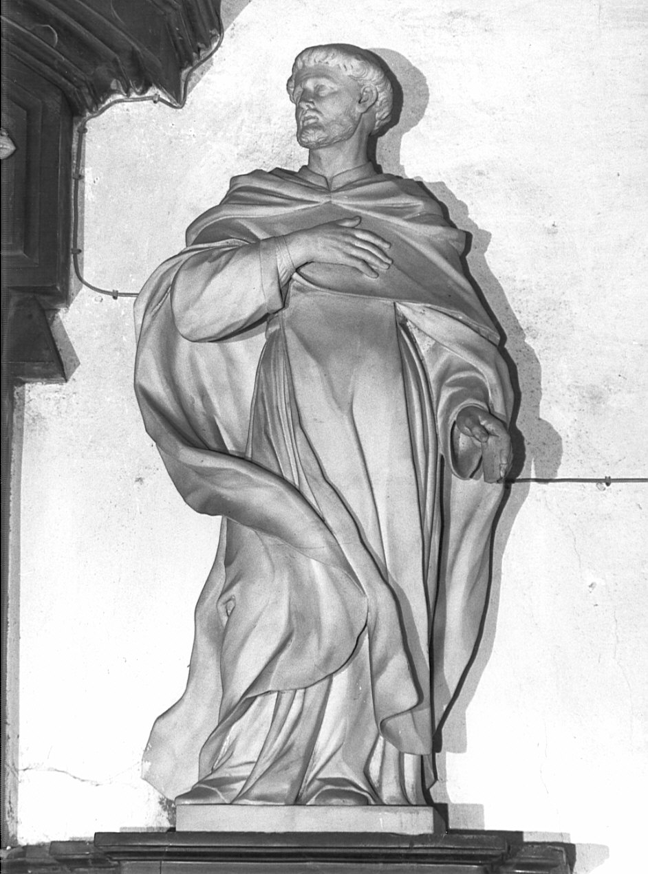 - NOTIZIE STORICO CRITICHE Problematica l' identificazione del Santo: il Bassi ritiene sia S.Marco, il Bongiani San Domenico, il Negroni S. Pietro Martire, tutti gli altri autori si limitano alla generica definizione di Santo. Dal punto di vista iconografico l'ipotesi più probabile é che si tratti di San Pietro Martire, visto che nella stessa Alzano a una chiesa a lui dedicata