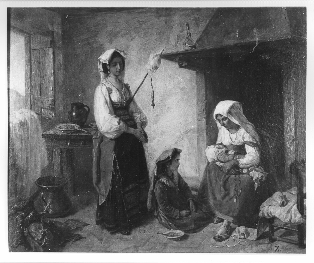 Dipinto raffigurante un interno domestico in ciociaria