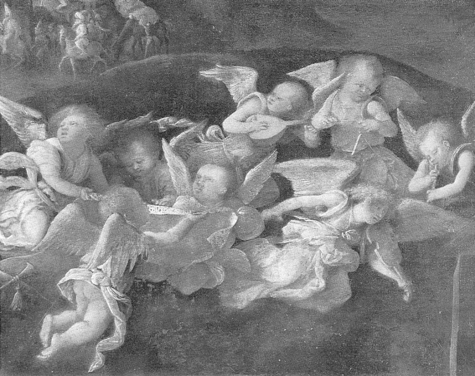 Otto angioletti musicanti e il corteo dei Magi. angioletti musicanti (otto) e viaggio dei Re Magi a Betlemme guidati dalla stella
