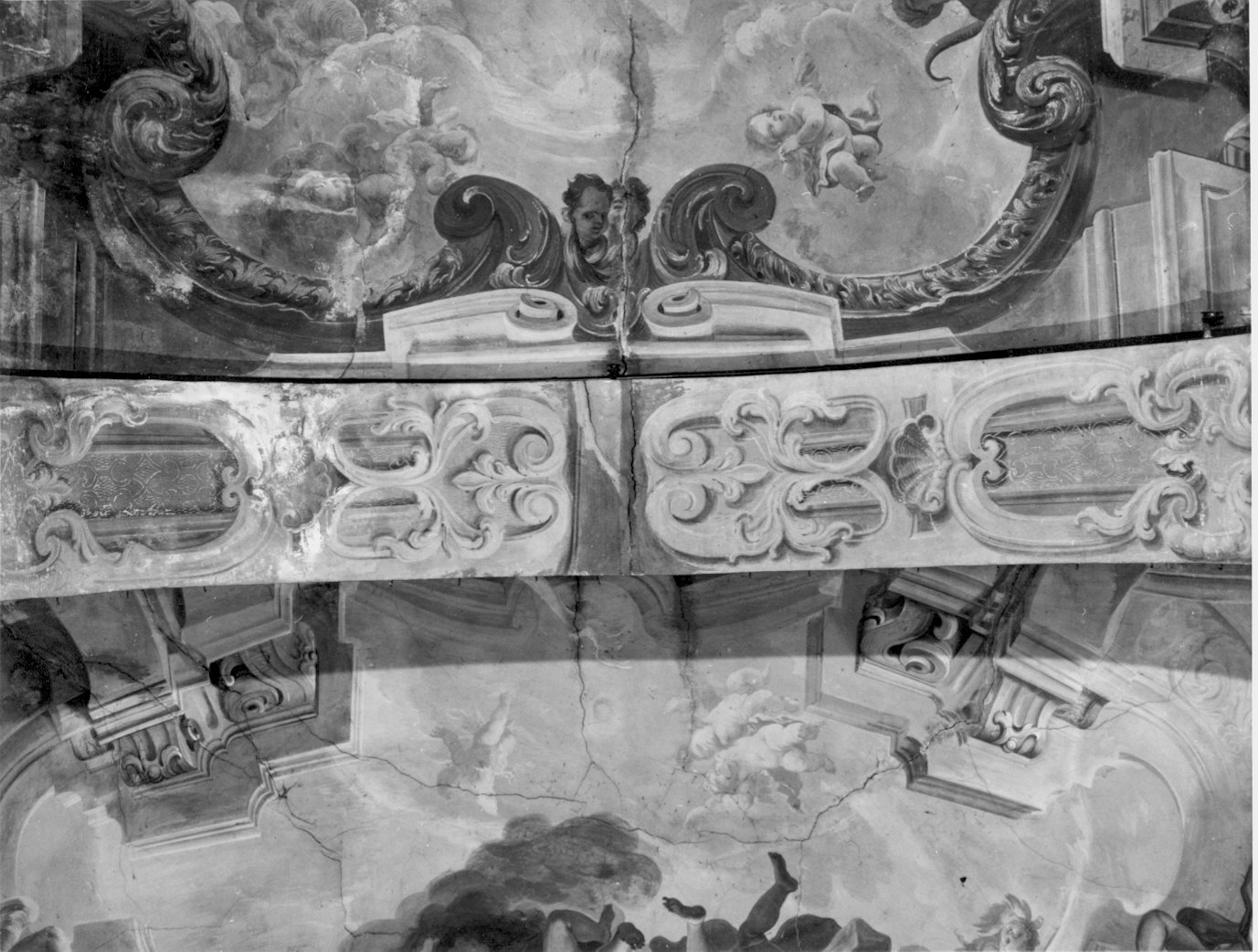 Il sottarco del presbiterio presenta una decorazione simmetrica a girali contrapposti, le volute sono impreziosite da motivi fogliacei e da grosse conchiglie