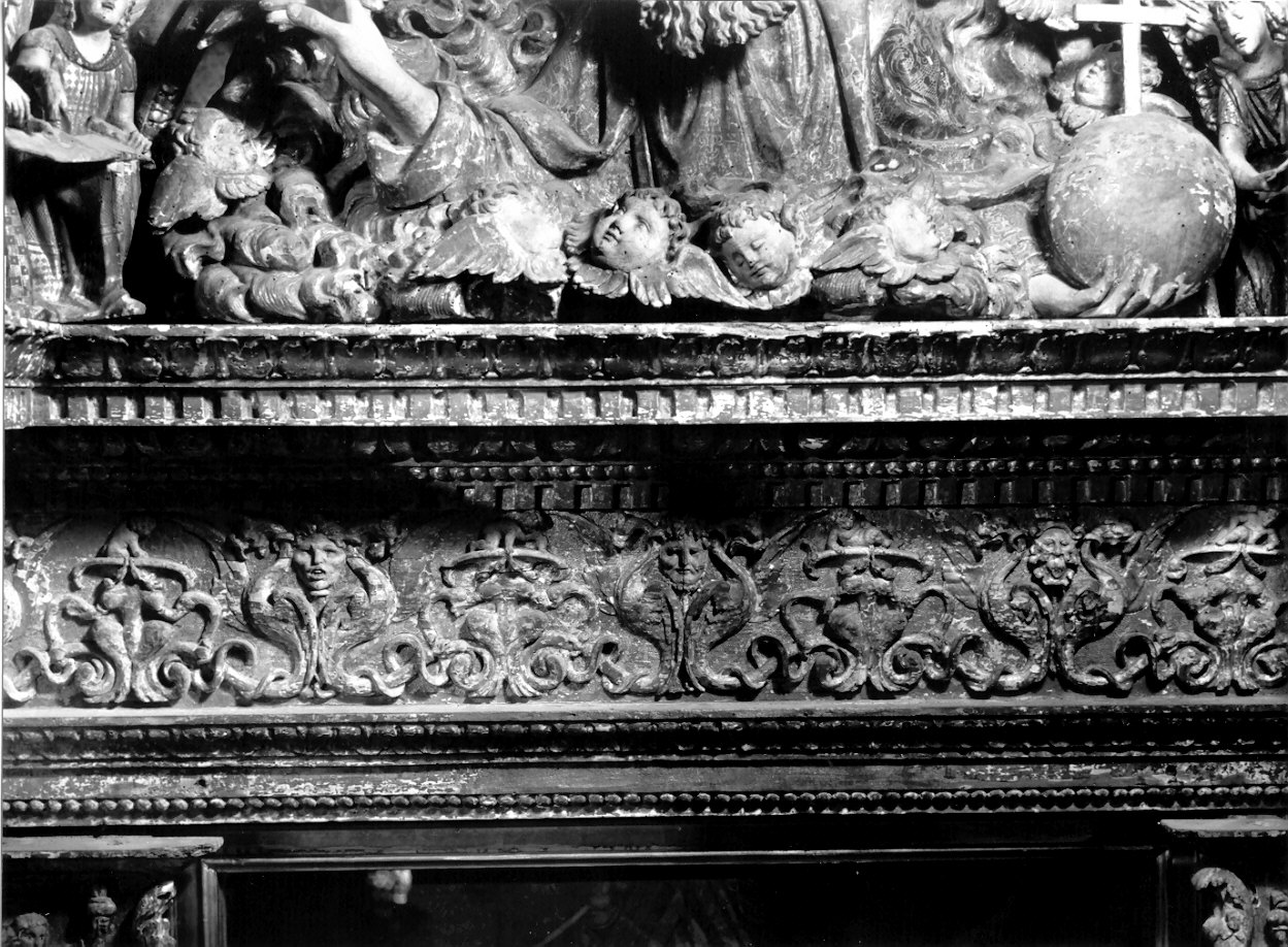 motivi decorativi vegetali con mascheroni tra girali e vasi con puttini