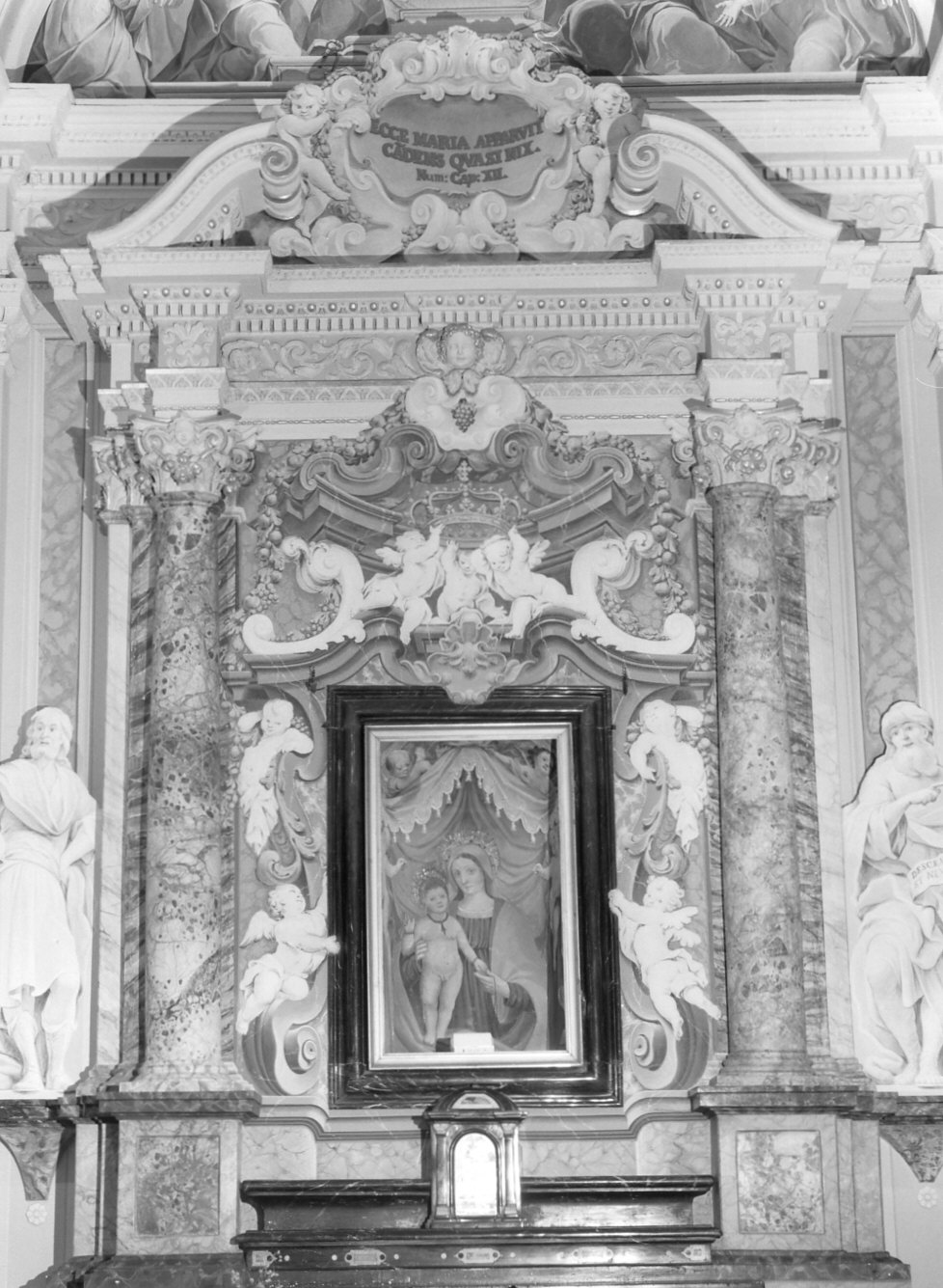 - ISCRIZIONI sulla targa - ECCE MARIA APPARUIT / CADENS QUASI NIX. / NUM: CAP: XII - lettere capitali -