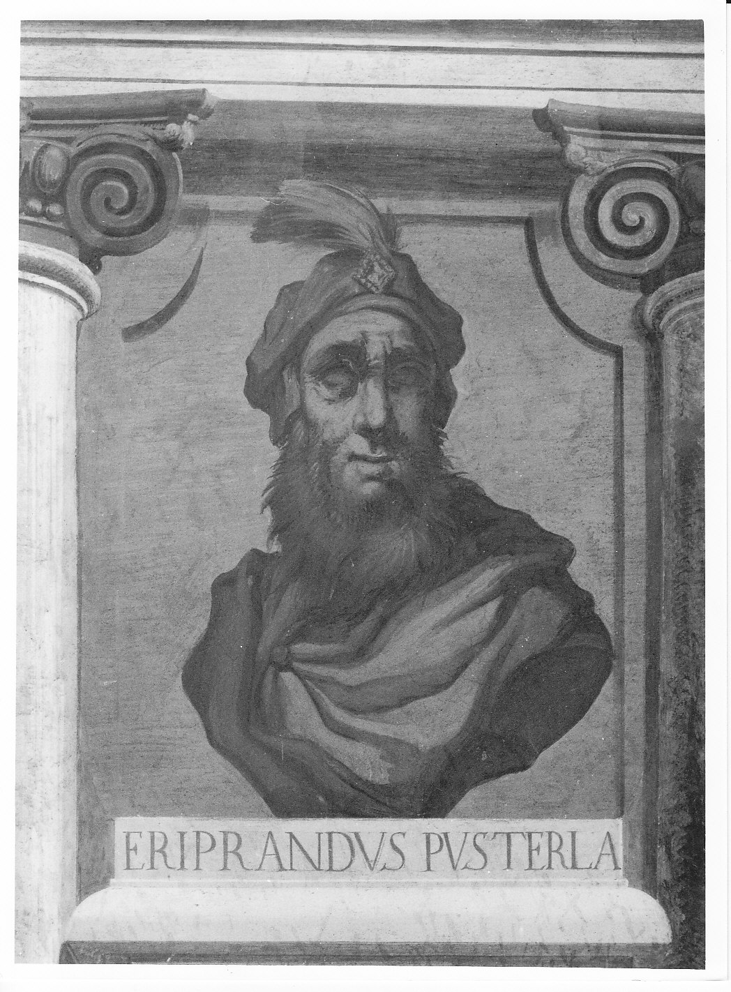 - ISCRIZIONI alla base del busto - ERIPRANDUS PUSTERLA - lettere capitali - a pennello - latino